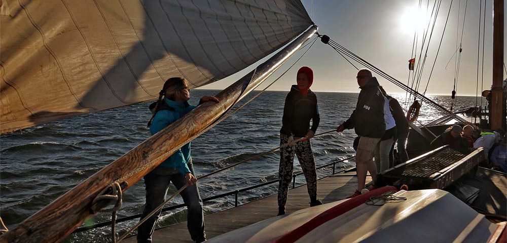 Am nächsten Tag war Rückfahrt nach Harlingen angesagt – der Wind war gut, die Sonne knallte und somit konnten wir unter vollen Segeln durch das Wattenmeer kreuzen.